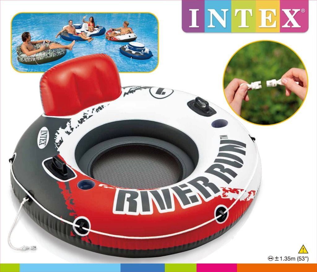 To je sedež za vodo z ročaji, držali za pijačo in oporo za hrbet. V trpežnem 135 cm dolgem napihljivem stolu River Run vam ni treba skrbeti za pomanjkanje udobja. Mrežast vložek na tleh za hlajenje, integrirano naslonjalo, 2 držala za pijačo, 2 zračni komori in 0,45 mm debel vinil ponujajo veliko razkošja in prijetno hours. Made iz visokokakovostnega vinila. Intexove napihljive igrače in dodatki izpolnjujejo najvišje varnostne standarde za izdelavo in materiale.