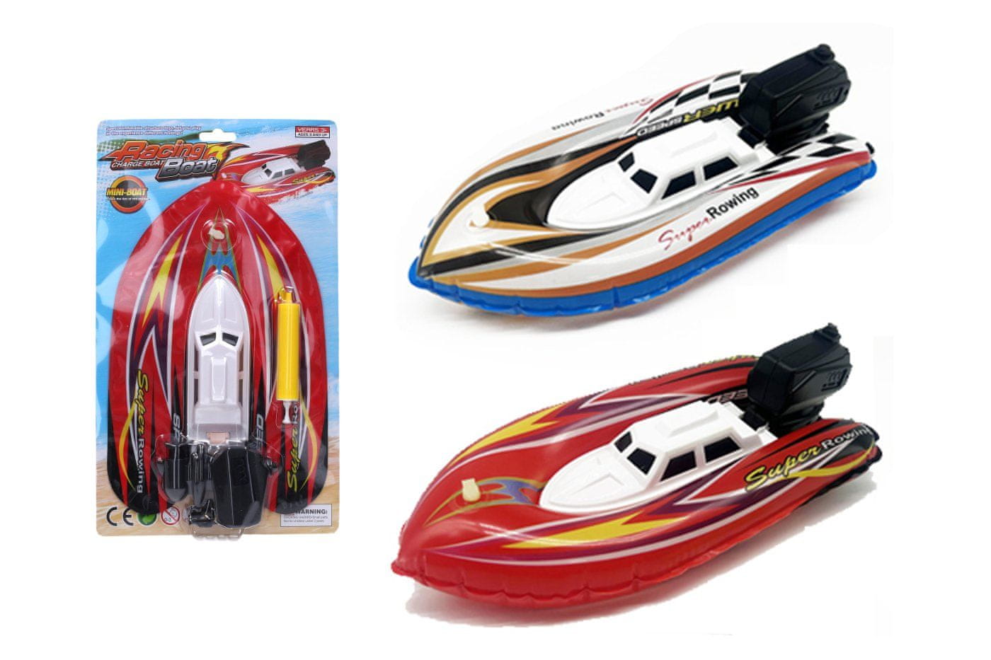 Napihljiv čoln. Dimenzije 21,5×3×37 cm. 2 različici – rdeča, modra. 2×AA baterije niso vključene.