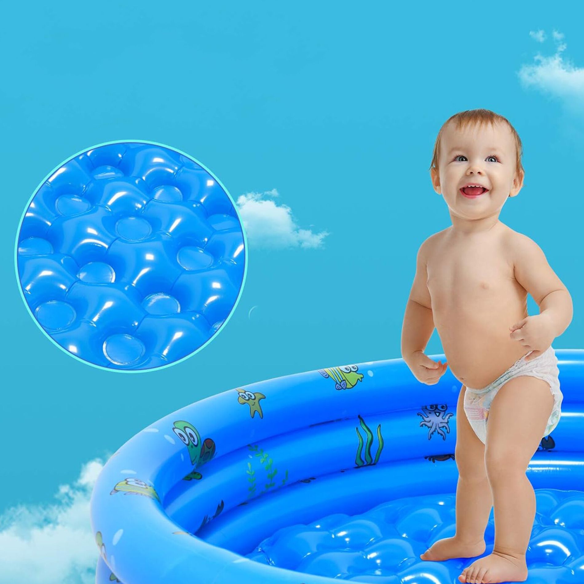 Mehko napihljivo dno bazena zagotavlja udobje in varnost vaših otrok.
