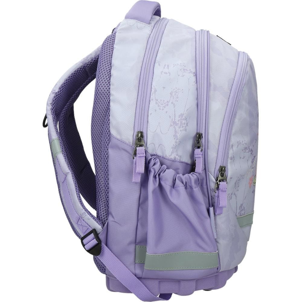 Preprost, a funkcionalen nahrbtnik z nežnim vzorcem je popolna izbira za mlajše šolarje. Z ergonomsko podporo in nizko težo nudi udobje in varnost pri vsakodnevni uporabi.