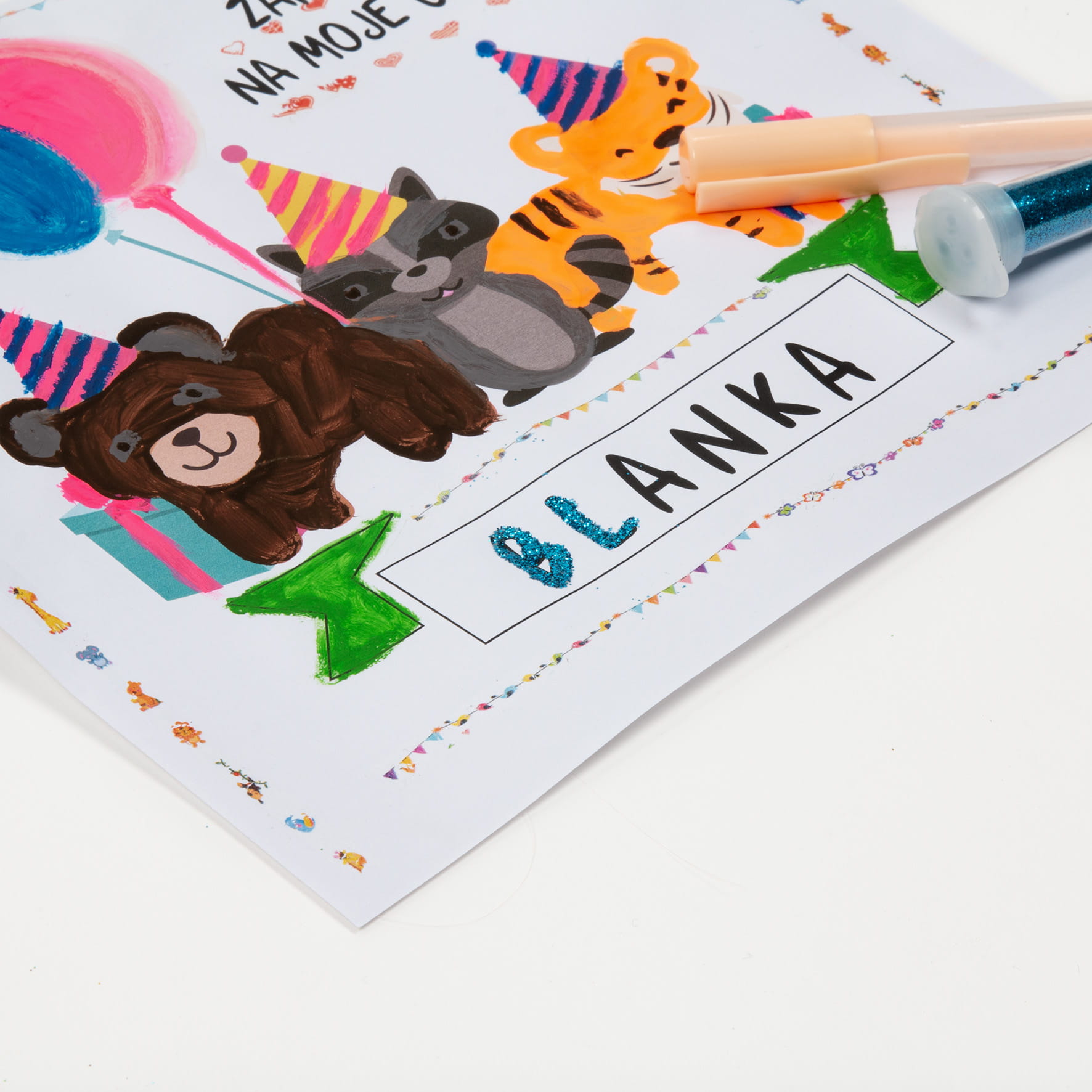 Preprosto ustvarite vzorec ali besedilo z lepilom, kot bi ga uporabili z navadnim tankim črtalom, nato potresite z bleščicami in počakajte, da se lepilo posuši.