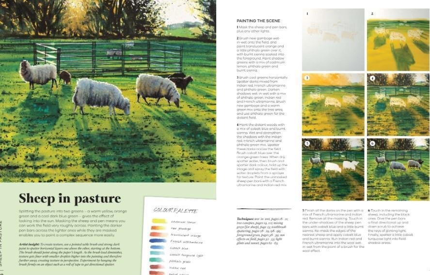 Ta osvežena izdaja, ki je prvotno izšla pod naslovom The Landscape Painter's Essential Handbook, daje več prostora umetnosti in ponovno prinaša eno temeljnih knjig mednarodnega mojstra akvarela o krajinskem slikarstvu. Vključenih je 50 pokrajin, od nežnega travnika s cvetjem in meglenih poletnih gora do dramatičnih skalnih prizorov in valovitega potoka v soncu. Vsaka pokrajina je raziskana v okviru trdega razpona z vajami, zaporedji po korakih in enostavnimi navodili; osvojite načelo in tehniko ter zaključite z vajami slikanja z akvarelom.