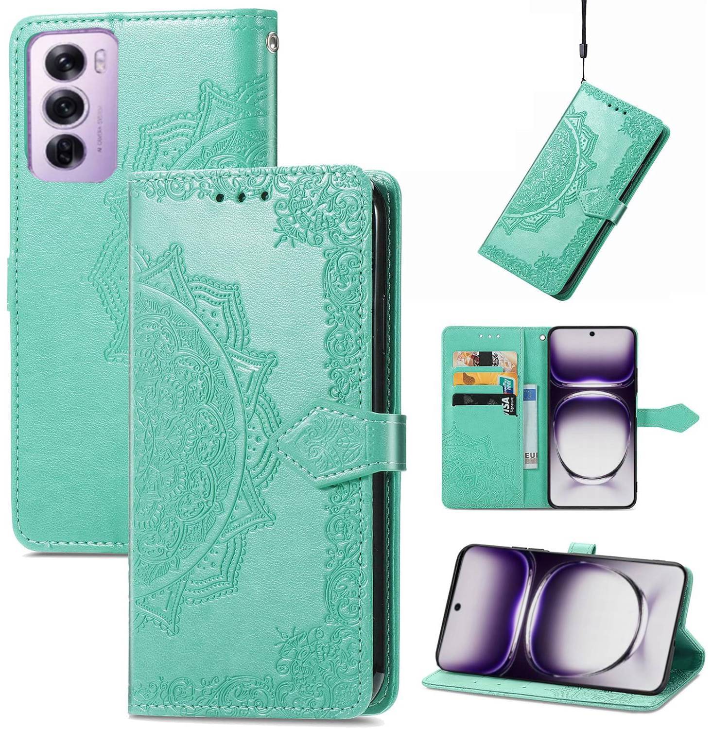 shumee Knjižna torbica Mezzo za Oppo Reno 12 Pro Mandala Green