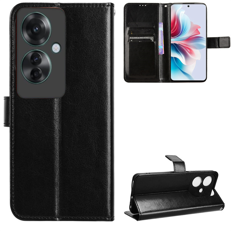 Kovinska usnjena torbica za Oppo Reno 11F črna Celoten opis