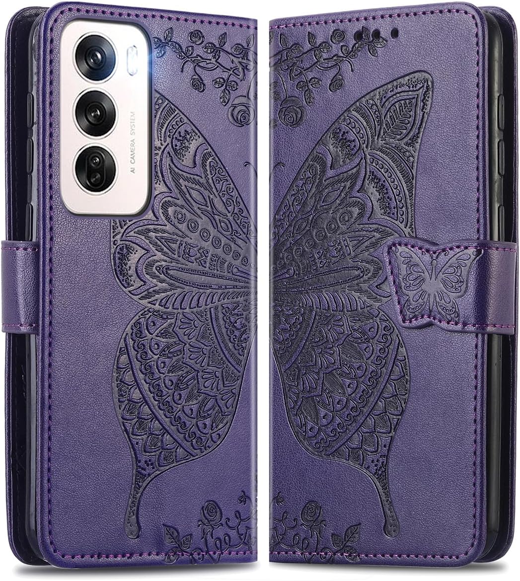 shumee Oppo Reno 12 Butterfly Wallet Flip Case Vijolična