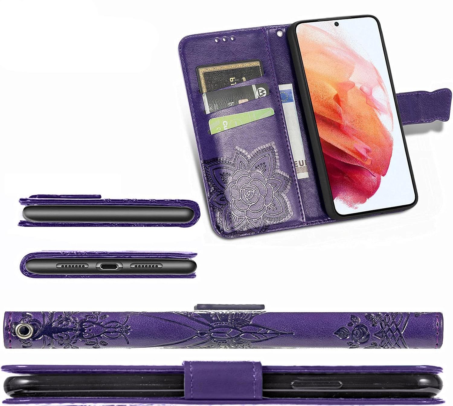 Vzorec torbice Wallet Butterfly za razliko od večine primerov te vrste ni bil pobarvan ali potiskan, temveč stisnjen na material s stiskalnico, zaradi česar je obstojen, odporen in daje ohišju mehko, neravno površino, ki jo lahko občutite pod prsti.