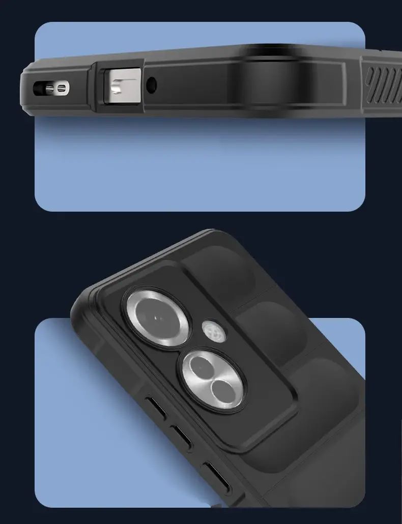 - Ima dvostopenjsko zaščito kamere. Izrezi za leče in dvignjen dizajn.