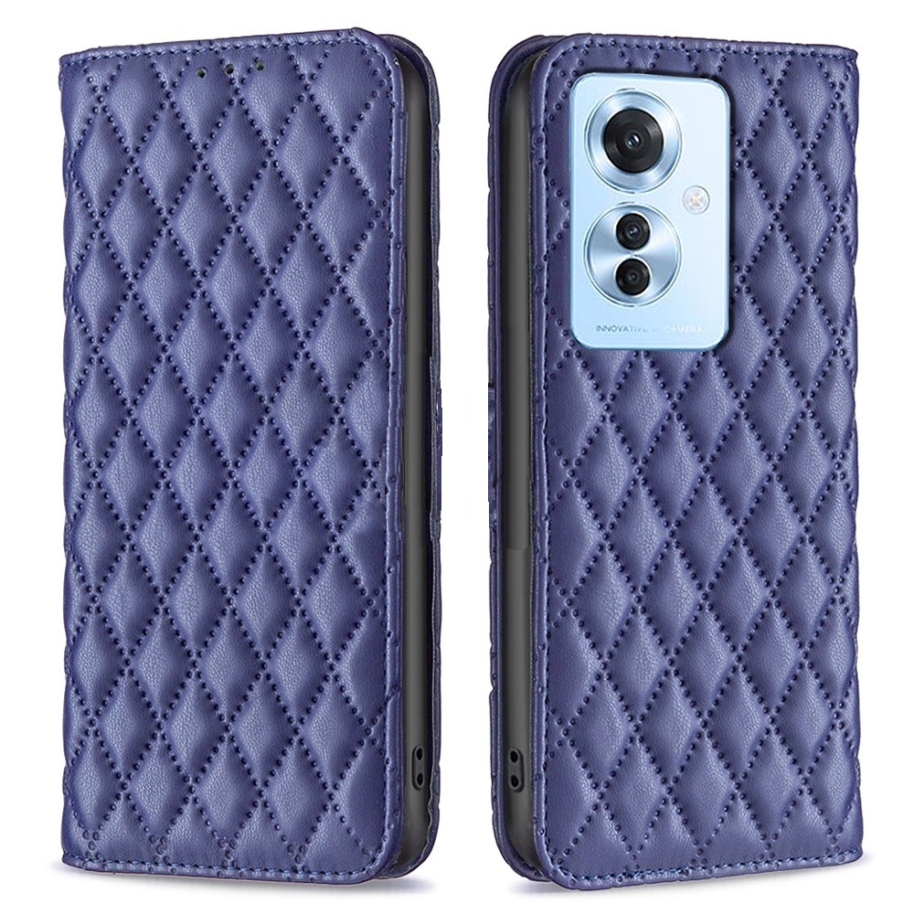 shumee Usnjena karirasta torbica denarnica za Oppo Reno 11F mornarsko modra