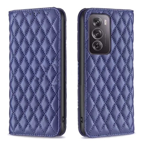 shumee Usnjena karirasta torbica denarnica za Oppo Reno 12 mornarsko modra