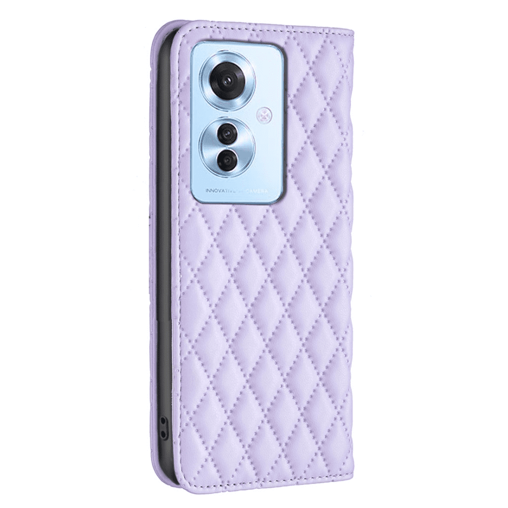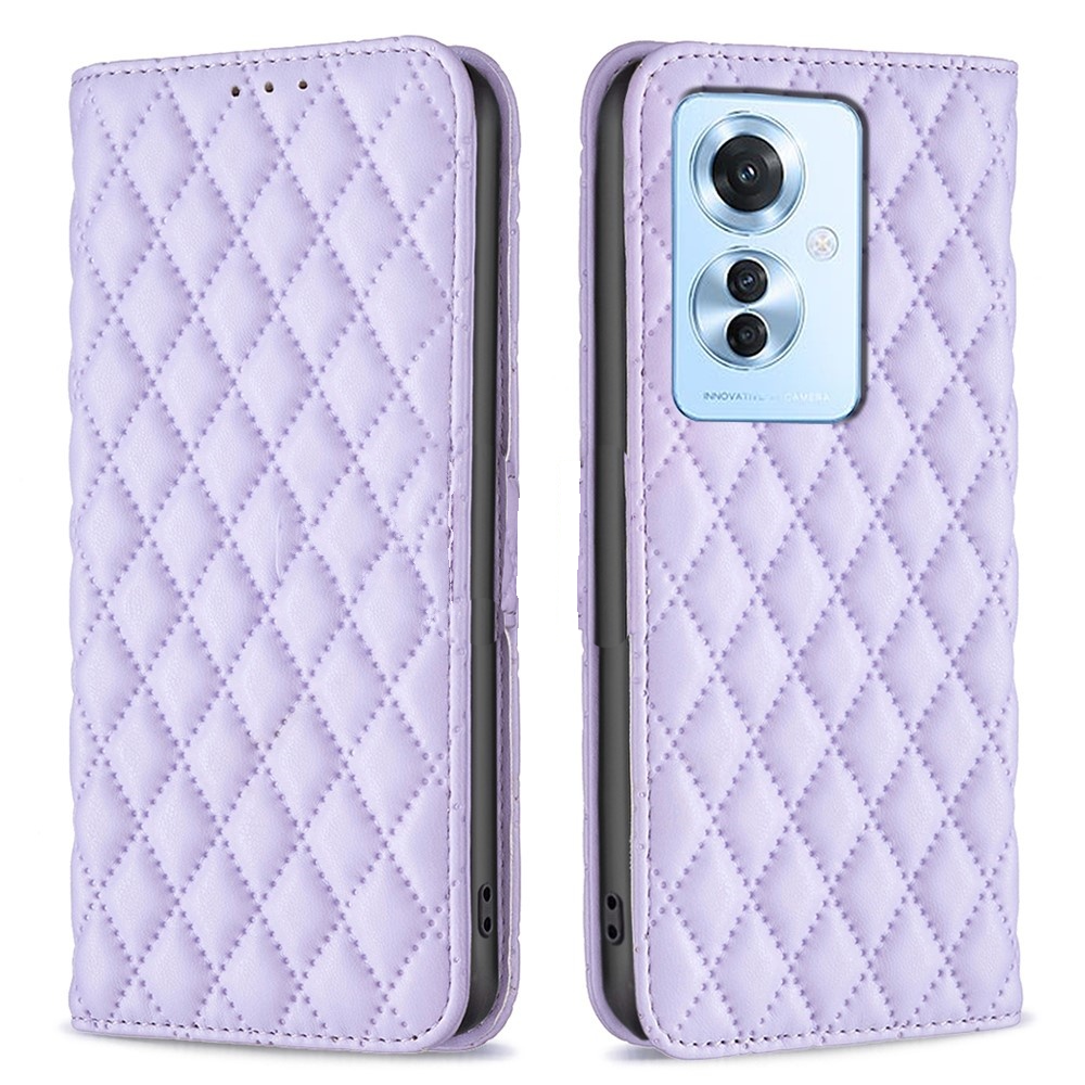 Usnjena karirasta torbica denarnica za Oppo Reno 11F vijolična Celoten opis