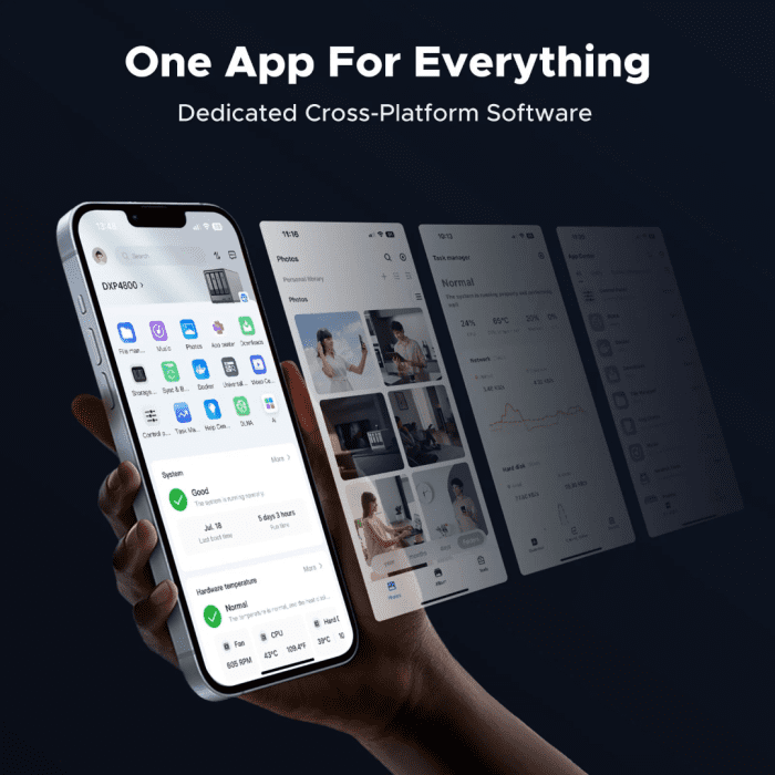 Upravljajte svojo shrambo in dostopajte do svojih datotek iz katere koli svoje naprave z našo programsko opremo po meri. Ni vam treba prenesti več orodij ali uporabiti zapletene programske opreme tretjih oseb. Na voljo za Android, iOS, Windows, Mac, spletne brskalnike in pametne televizorje. (Za boljšo izkušnjo sledite navodilom za nadgradnjo vdelane programske opreme.)