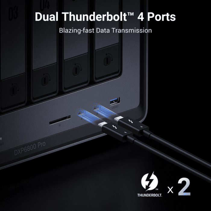 NASync DXP6800 Pro je opremljen s šestimi SATA in dvema ležiščema za pogone M.2 NVMe in ima največjo zmogljivost shranjevanja do 160TB. In podpira ravni RAID JBOD/Basic/RAID0/RAID1/RAID5/RAID6/RAID10. Shranite na tisoče HD filmov, slik in dokumentov, tako da bo NASync knjižnica filmov, foto album in prostor za shranjevanje datotek v enem.