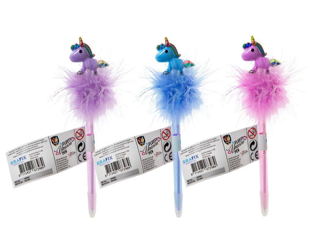 Svinčnik s pompom in enorožcem v treh barvah – vijolični, rožnati in modri. Celoten opis