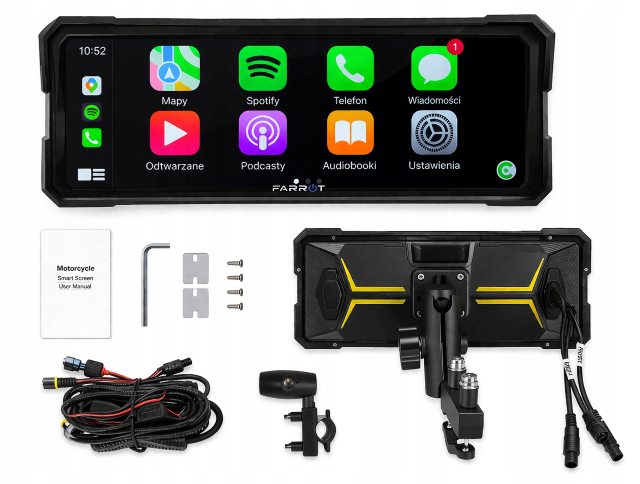 Ta moderna 8,1-palčna multimedijska postaja za motor je odlična rešitev za vse motoriste, ki želijo združiti udobje, varnost in tehnologijo. Naprava omogoča dostop do navigacije, glasbe, klicev in aplikacij – vse na enem mestu.