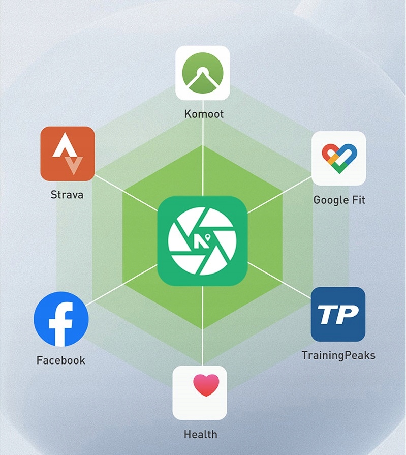 Shranjene vožnje je mogoče naložiti v aplikacijo Navihood in sinhronizirati z drugimi aplikacijami, kot so Strava, Komoot, Google Fit, Training Peaks, Facebook in Health.