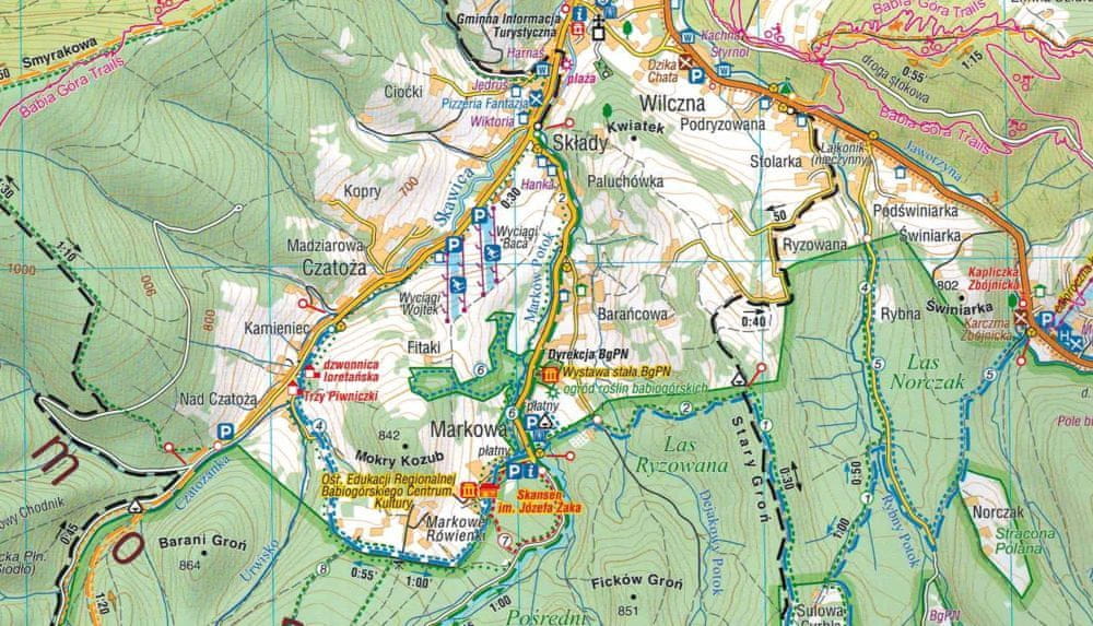 shumee Babja Gora in Zawoja 1:30.000. Plastificiran turistični zemljevid. Izdan leta 2024. Kompas