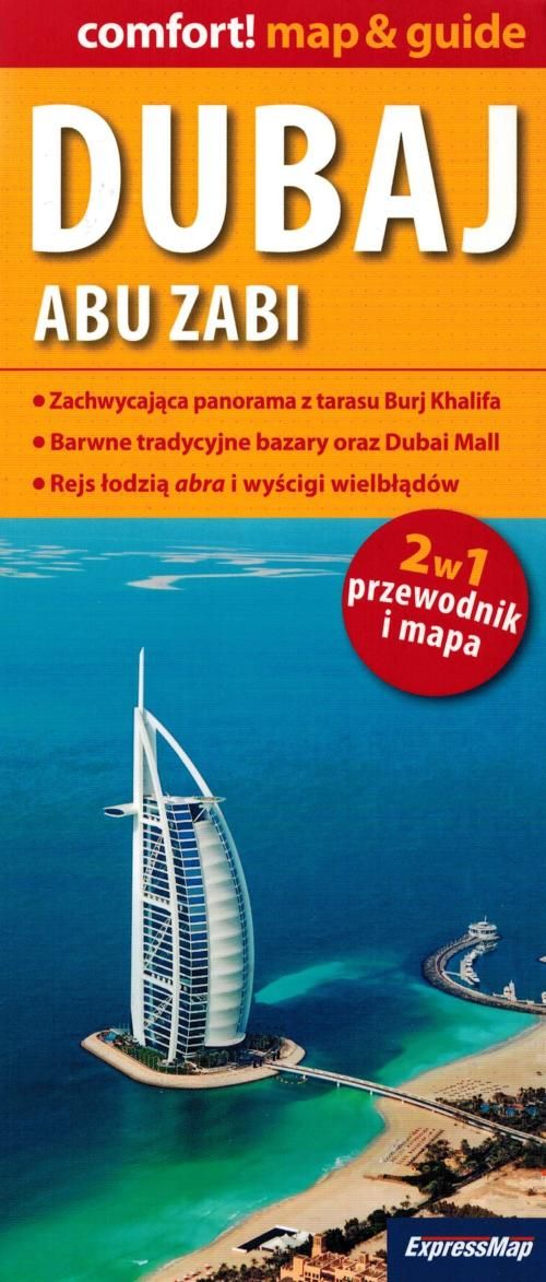 Zložljiv, laminiran turistični zemljevid Dubaja v merilu 1 : 80.000, skupaj z mini vodnikom, ki ga je izdala založba Expressmap.