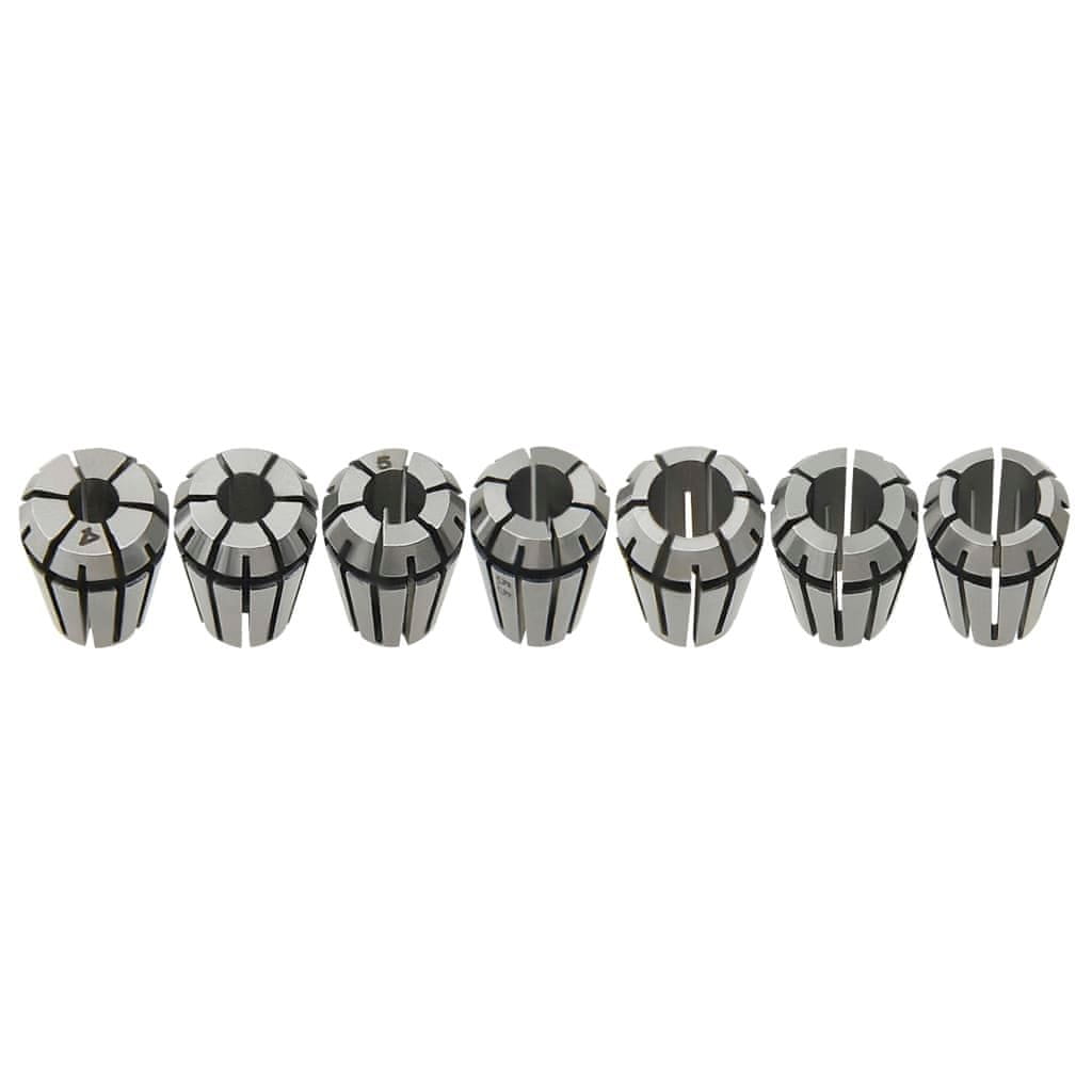 Ta vpenjala so izdelana iz visokokakovostnega jekla, so stabilna in praktična. So zelo natančna, imajo dobro elastičnost in odpornost na udarce. Komplet ima vgrajen dizajn za samodejno sproščanje, orodja pa se v držalu ne bodo zataknila. Vsako vpenjalo je lepo shranjeno v ločenem zaščitnem prostoru z oznako. Vpenjala so označena po velikosti, zato jih boste enostavno prepoznali.