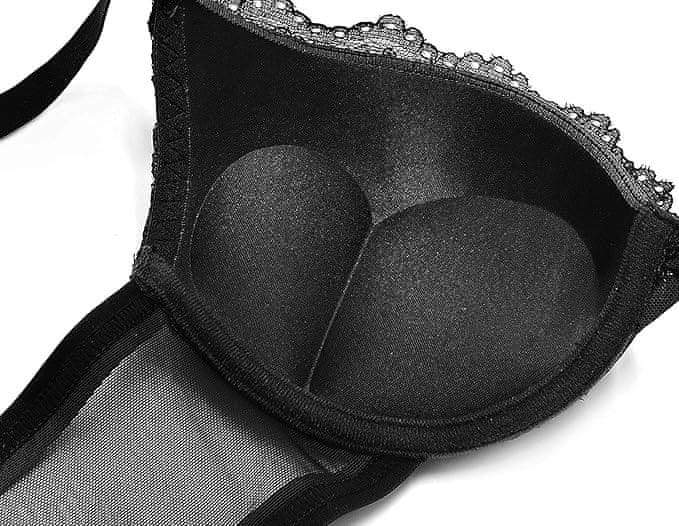 Nikcorp Čipkast modrček push-up s kostjo, elegantno spodnje perilo s cvetlično čipko, podložene košarice, črna barva, 38C