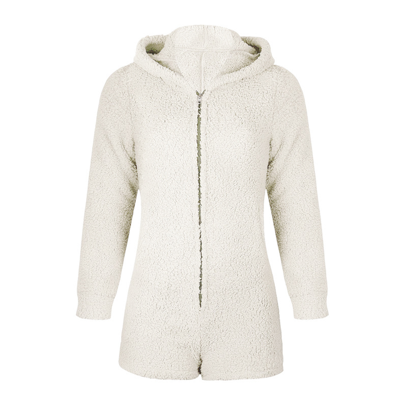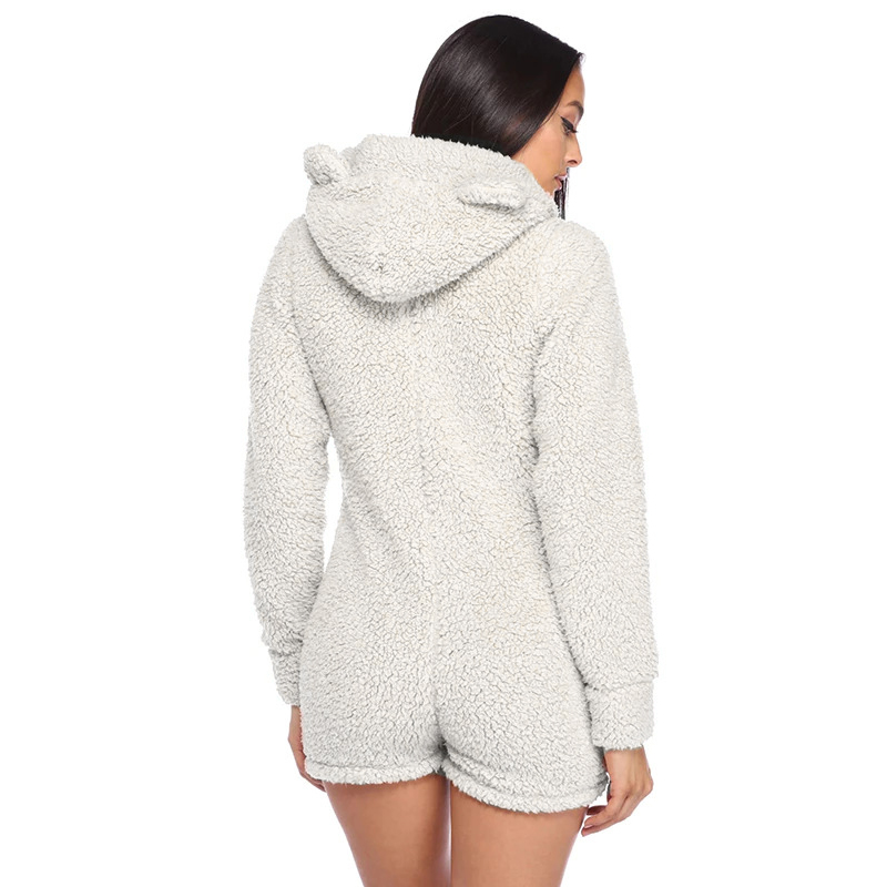 shumee Bela enodelna pižama, topel spalni komplet z ušesi in kapuco