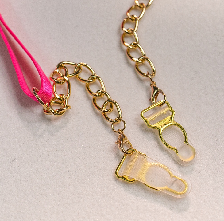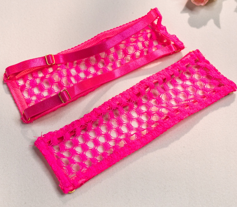 - Komplet vsebuje: tangice, modrček, trakove za noge, pas za trebuh (prva fotografija)
