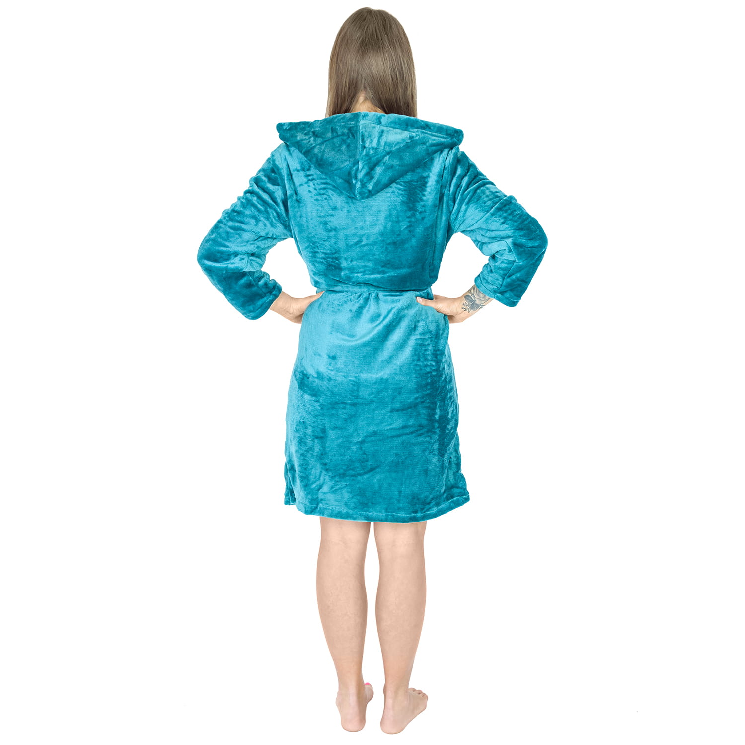 shumee Plišast topel ženski kopalni plašč z vezano kapuco, morska m udobna pižama