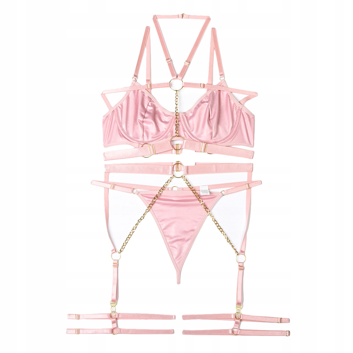 shumee Seksi ženski komplet spodnjega perila: modrček, naramnice, verižice, tangice, roza L