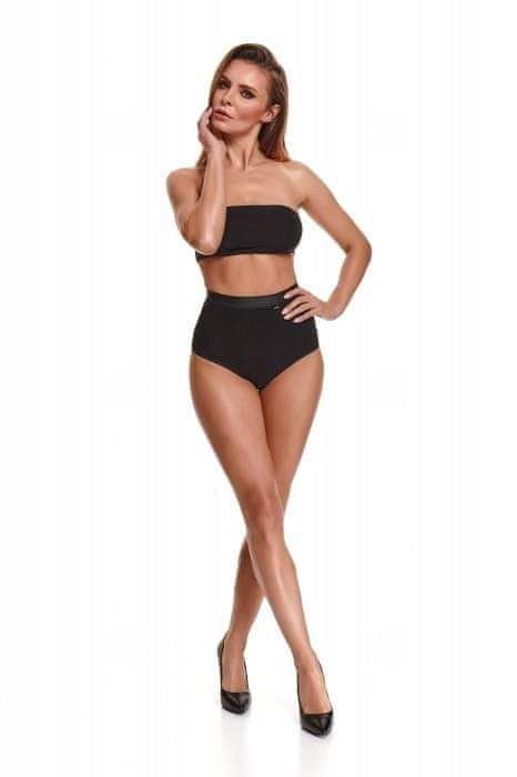 Ta dvodelni komplet izžareva subtilno čutnost Izdelan je iz črnega, raztegljivega materiala, ki se popolnoma prilagodi telesu in je hkrati zelo mehak na dotik Modrček ima spredaj mehko košarico, zadaj pa dve naramnici iz mehke črne elastike Hlačke z visokim pasom so privlačno prilegane zadnjici in poudarjajo njene obline Pas ima široko, mehko črno elastiko Barva: črna Velikosti: S, M, L, XL, XXL Material: 95 % poliester / 5 % elastan