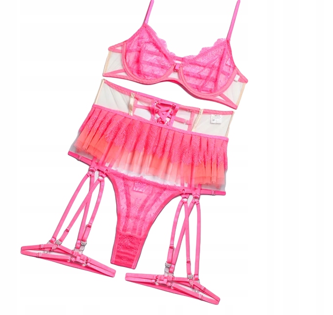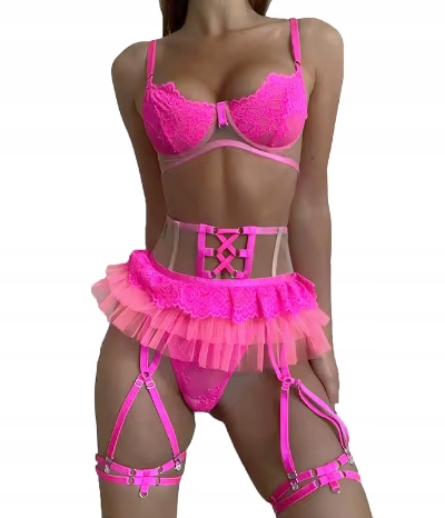 shumee Ženski komplet spodnjega perila, modrček, obleka, pas, tangice, seksi ROZA, L