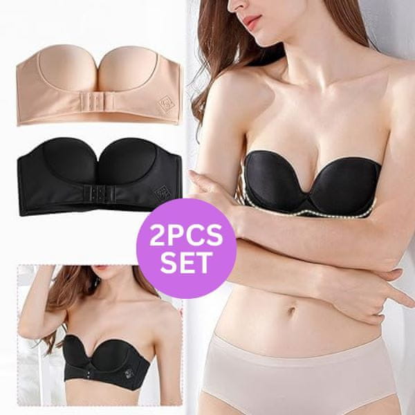 VIVVA® Nedrček brez naramnic, Modrček brez naramnic, Push Up (2 kosa, Bež in Črna) | GLAMBRA 80 D
