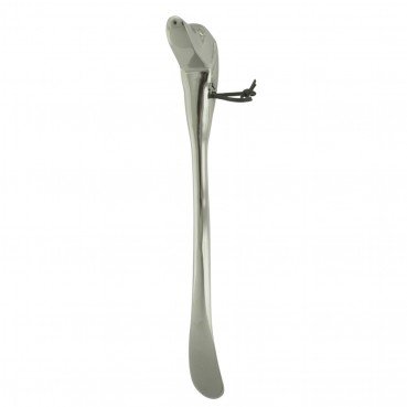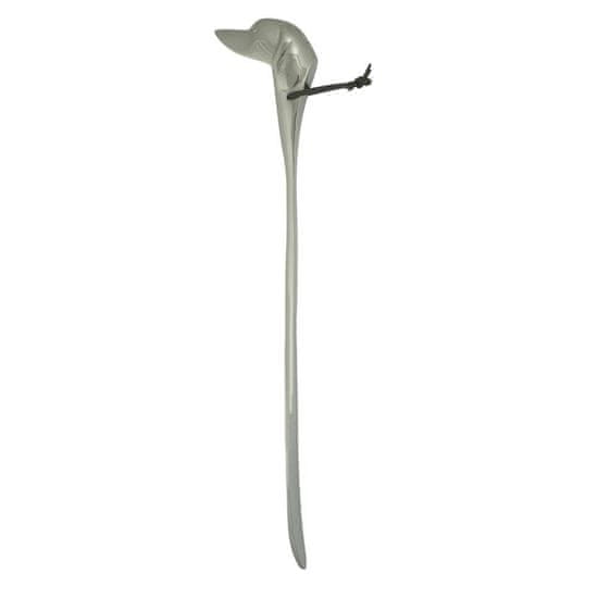 Eleganten aluminijast rog za čevlje, ki ima obliko glave hrta. Dimenzije žlice so 52 × 5 cm. Celoten opis