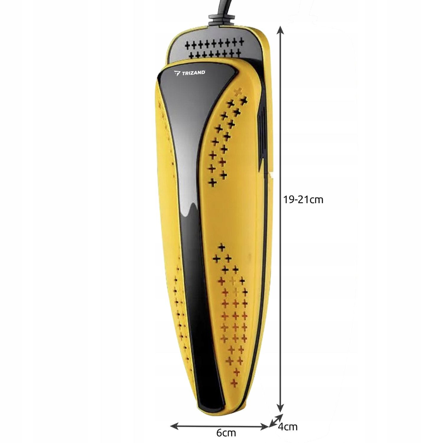 - SPECIFIKACIJA - barva: črno – rumena; 3 programi sušenja: da; raztegljivo: da; napajanje: omrežno; temperatura ogrevanja: 60 – 70 stopinj Celzija; mere: 19 – 21 × 6,5 xa cm; dolžina kabla: 120 cm; teža: 240 g
