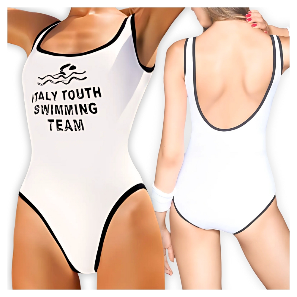 shumee Bele enodelne kopalke z napisi za bazen, na plažo, ženska velikost. Bele enodelne kopalke z napisi za bazen, na plažo, ženska velikost.