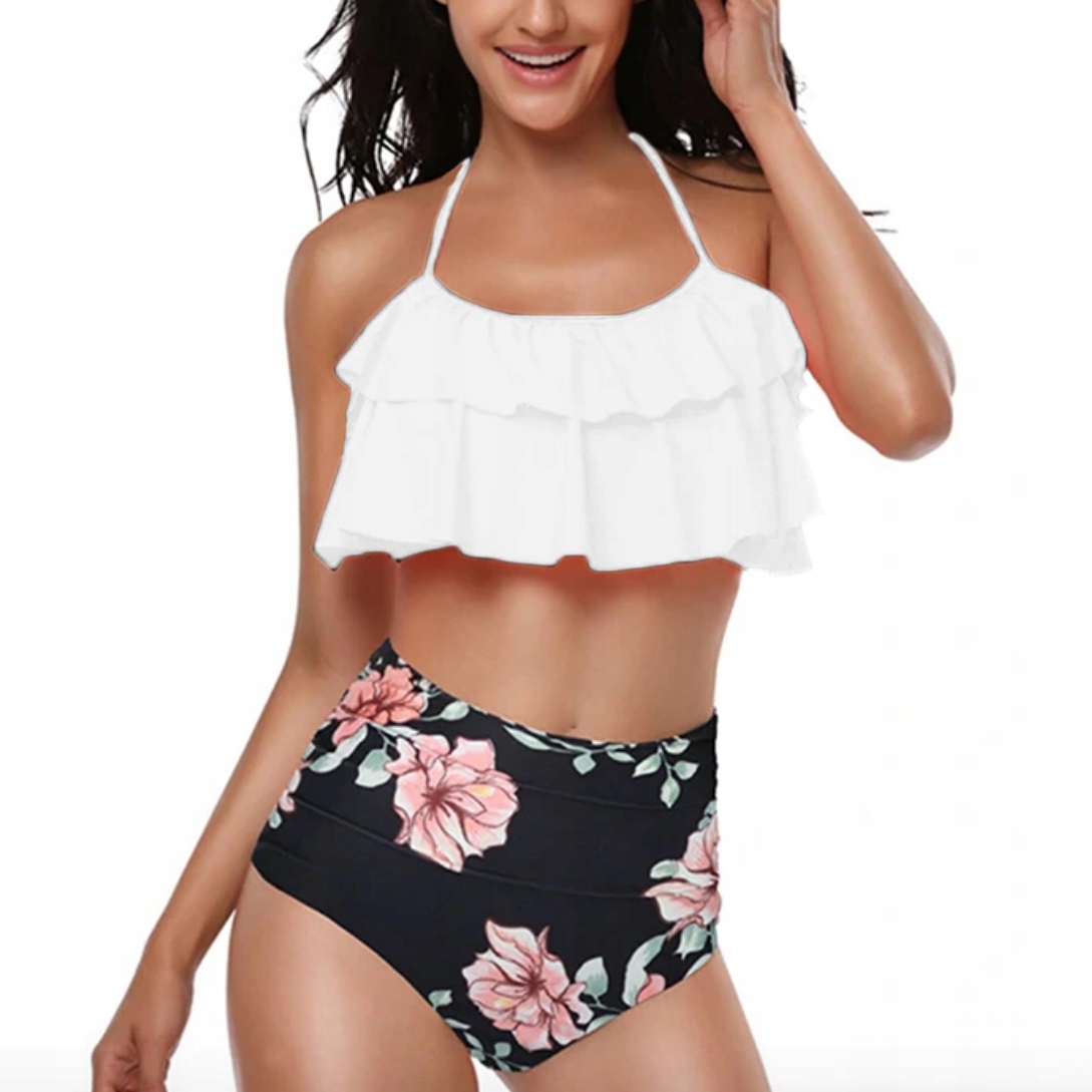 ⭐️BIKINI KOPALKE Z VISOKIM PASOM, ŠPANSKI NABORNIKI, BELO-ČRNE⭐️