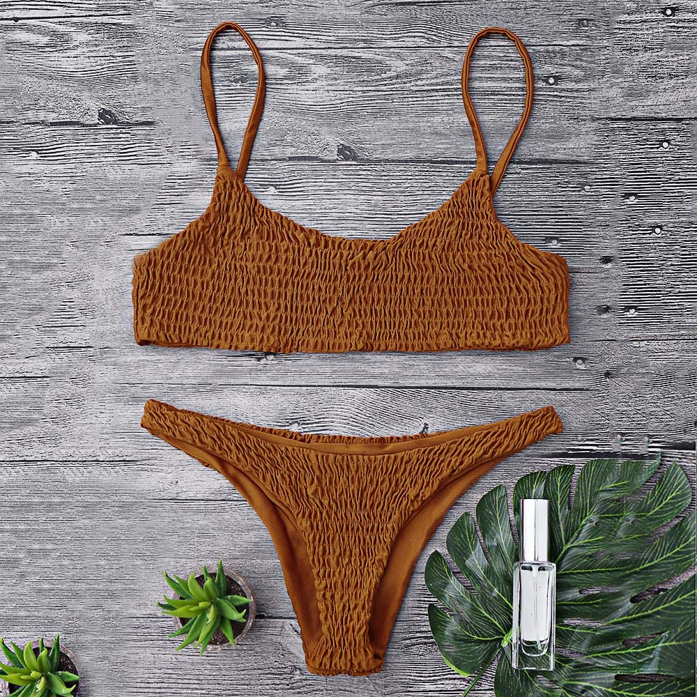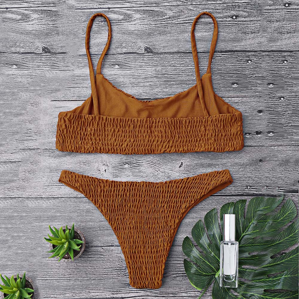 shumee Dvodelne kopalke bikini z visokim izrezom, kaki, seksi za sončenje S Dvodelne kopalke bikini z visokim izrezom, kaki, seksi za sončenje M