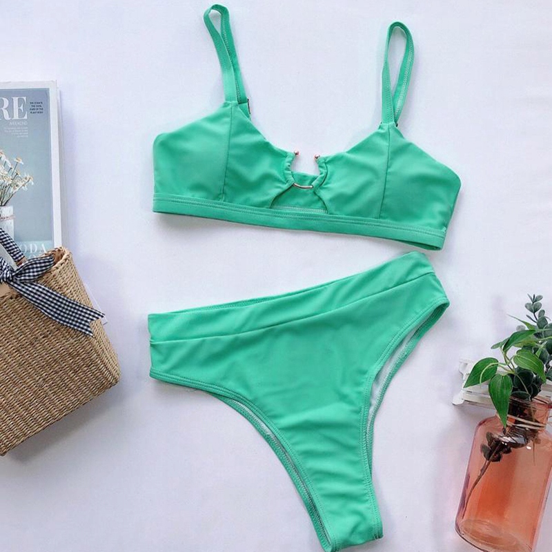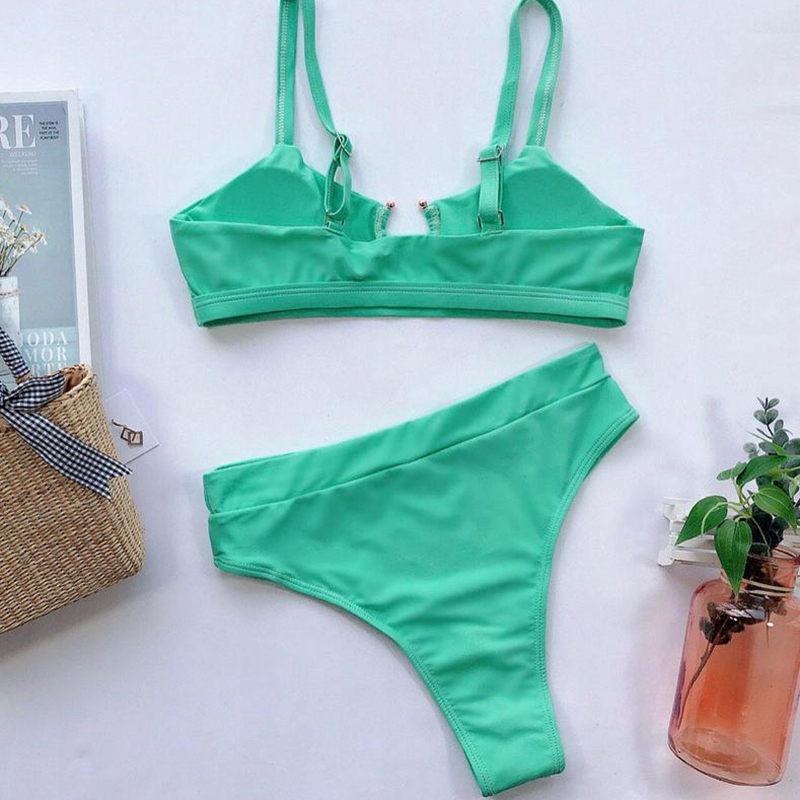 shumee Dvodelne kopalke z visokim pasom, zelene, za na plažo, za bazen, M
