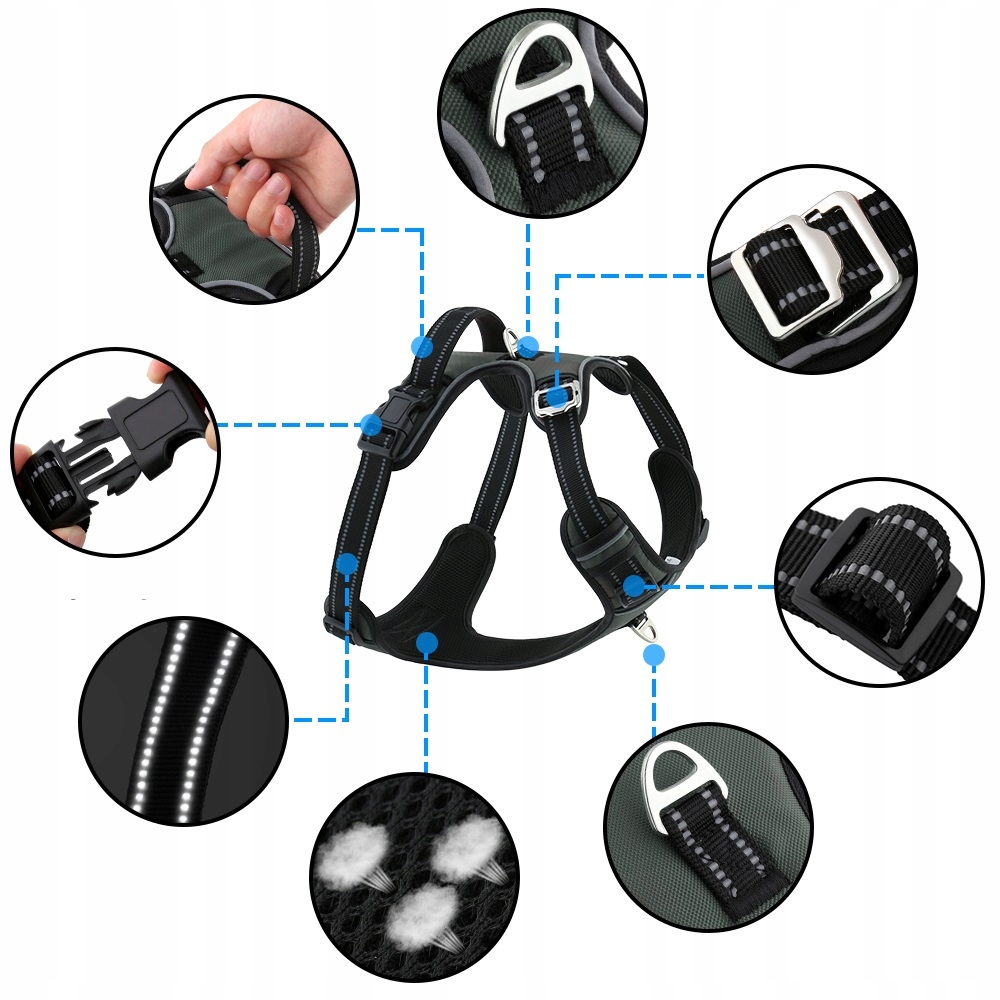 ✅ Popolno prileganje: Naši oprsniki imajo štiritočkovni sistem nastavljanja, ki zagotavlja popolno prileganje vašemu psu. To ne zagotavlja le udobja, temveč tudi izboljša nadzor med sprehodi.