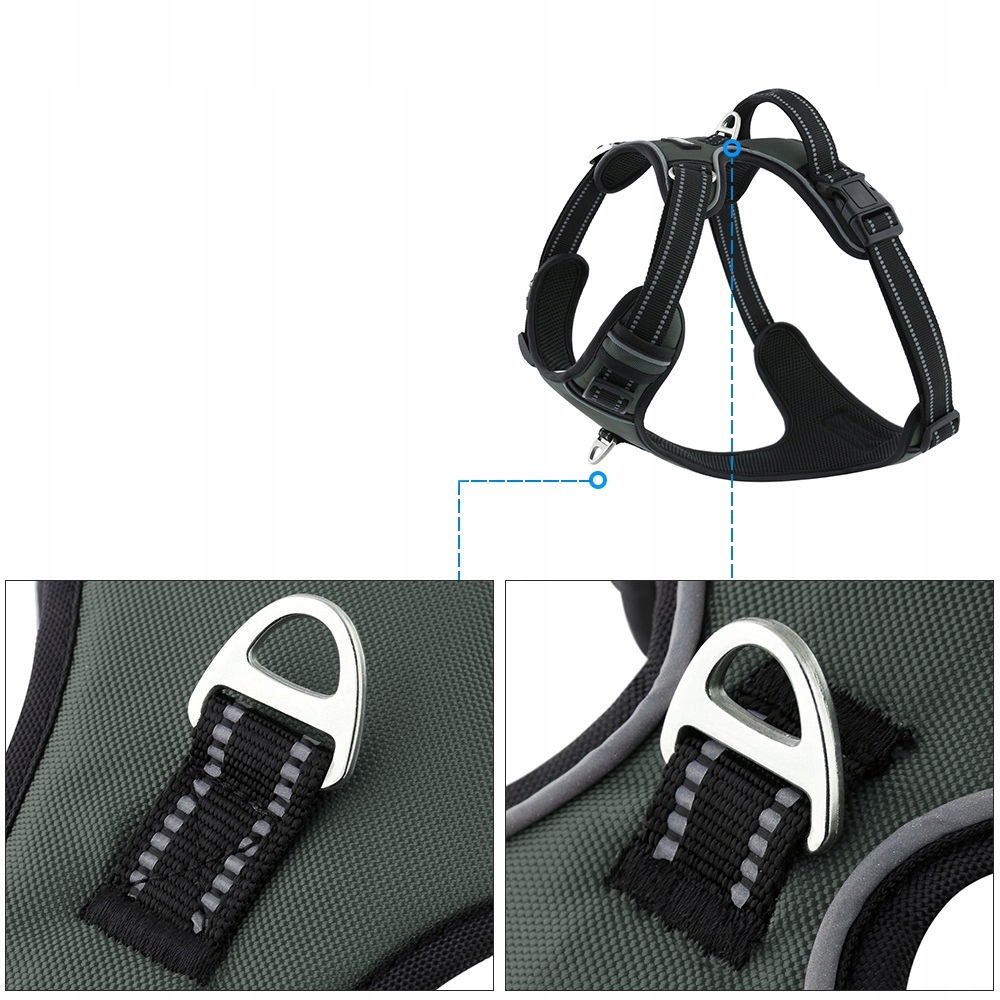✅ Močna ročaja: Dva močna kovinska ročaja na vrhu oprsnice sta idealna za pritrditev povodca. To zagotavlja varno pritrditev povodca.