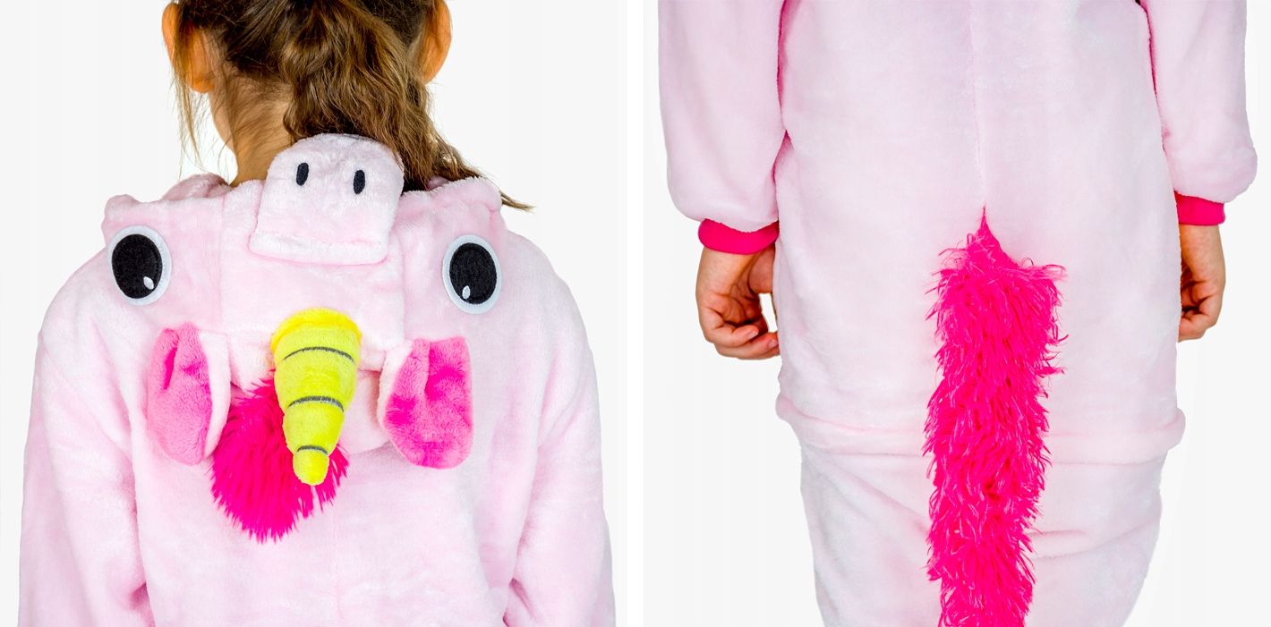 Pajkica, ki jo je navdihnil mitološki Pegaz. Izdelana je iz mehkega, toplega flanelastega flisa, ki zagotavlja udobje in svobodo nošenja. Kapuca z rogovom, ušesi in krili doda prepoznaven videz. Popolna kot pižama, oblačilo za prosti čas ali kostum.