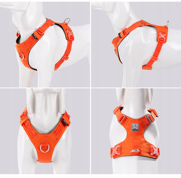 Oprsnik ima štiritočkovno nastavitev, ki omogoča popolno prileganje telesu psa, zato se naši štirinožni prijatelji v njem počutijo sproščeno in udobno. Snemljiv sprednji del oprsnice olajša sprehajanje psov, ki ne prenašajo, da jim je karkoli na glavi.