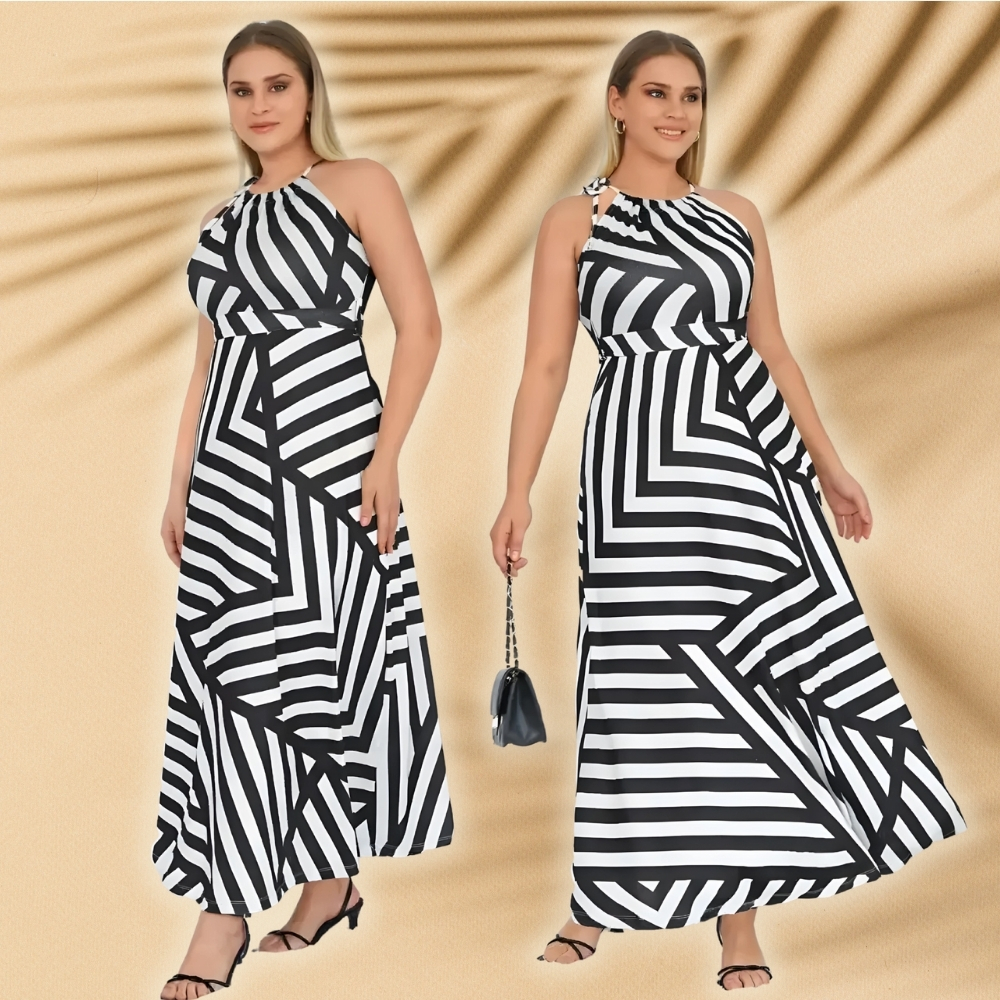 ⛱️ Sanjate o modnem in udobnem poletnem stilu? Naša dolga koktajl obleka s črtami je popolna rešitev!