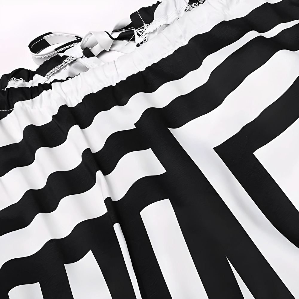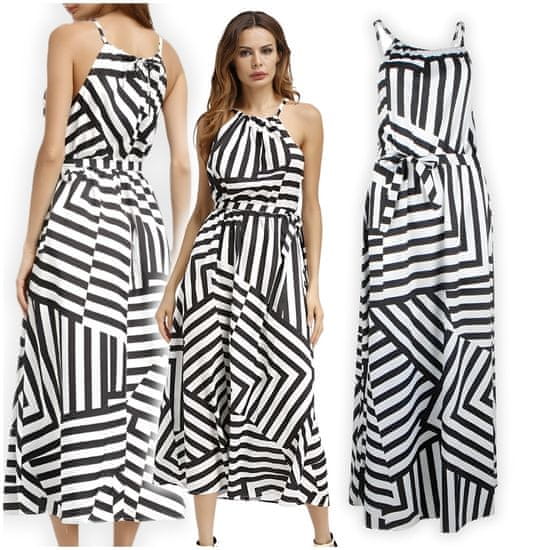 shumee Poletna maksi obleka s črno-belimi črtami in zavezami, grški boho, plus velikost XL L