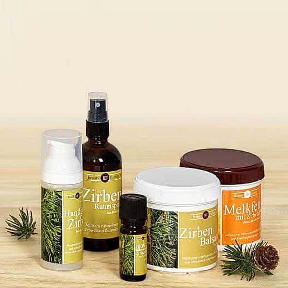 Eterično olje pinije prihaja iz alpskega bora, imenovanega tudi švicarski bor, in daje kremi čudovit vonj po piniji. Balzam iz švicarskega bora se lahko uporablja tudi za pomirjujočo nego vratu, mišic in sklepov.