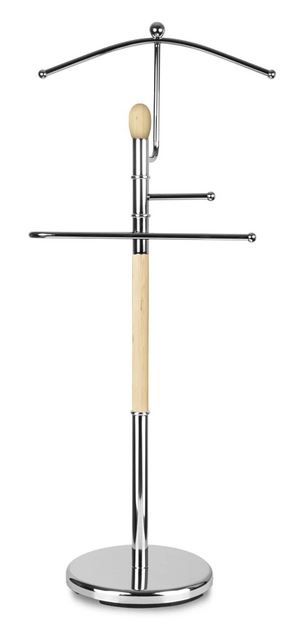 Nemi služabnik ELIAS je preprost obešalnik, ki ponuja veliko možnosti za obešanje oblačil. Izdelan je iz kroma in belega lesa. Stabilnost obešalnika zagotavlja kvadratno podnožje.