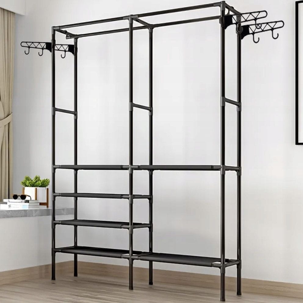 S tem prostornim obešalnikom za oblačila lahko shranjujete in organizirate oblačila in druge predmete. Obešalnik ima 6 polic, 2 palici in 8 kavljev, kar omogoča prostor za veliko število oblačil in Celoten opis