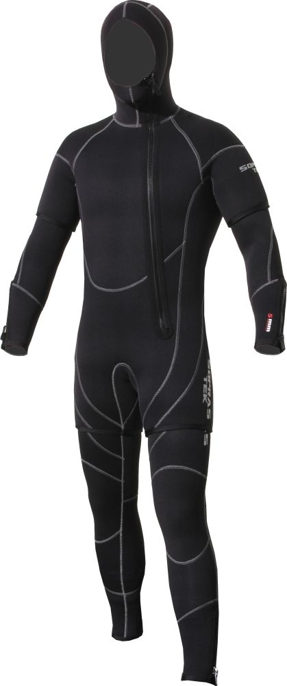 Neoprenska obleka 7 + 7 mm. Zasnovan za izjemno hladne vode (pod 10 °C). Celoten opis