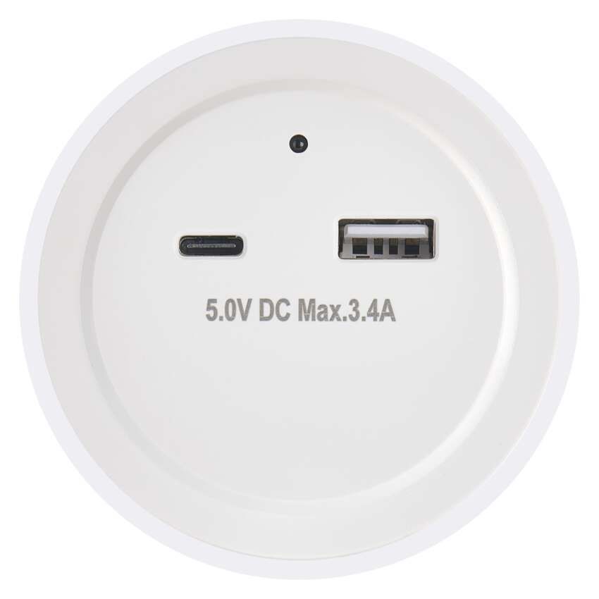 Nočna lučka je opremljena z dvema USB vhodoma z največjo izhodno močjo 5 V / 3,4 A, kar je idealno za polnjenje mobilnih naprav.