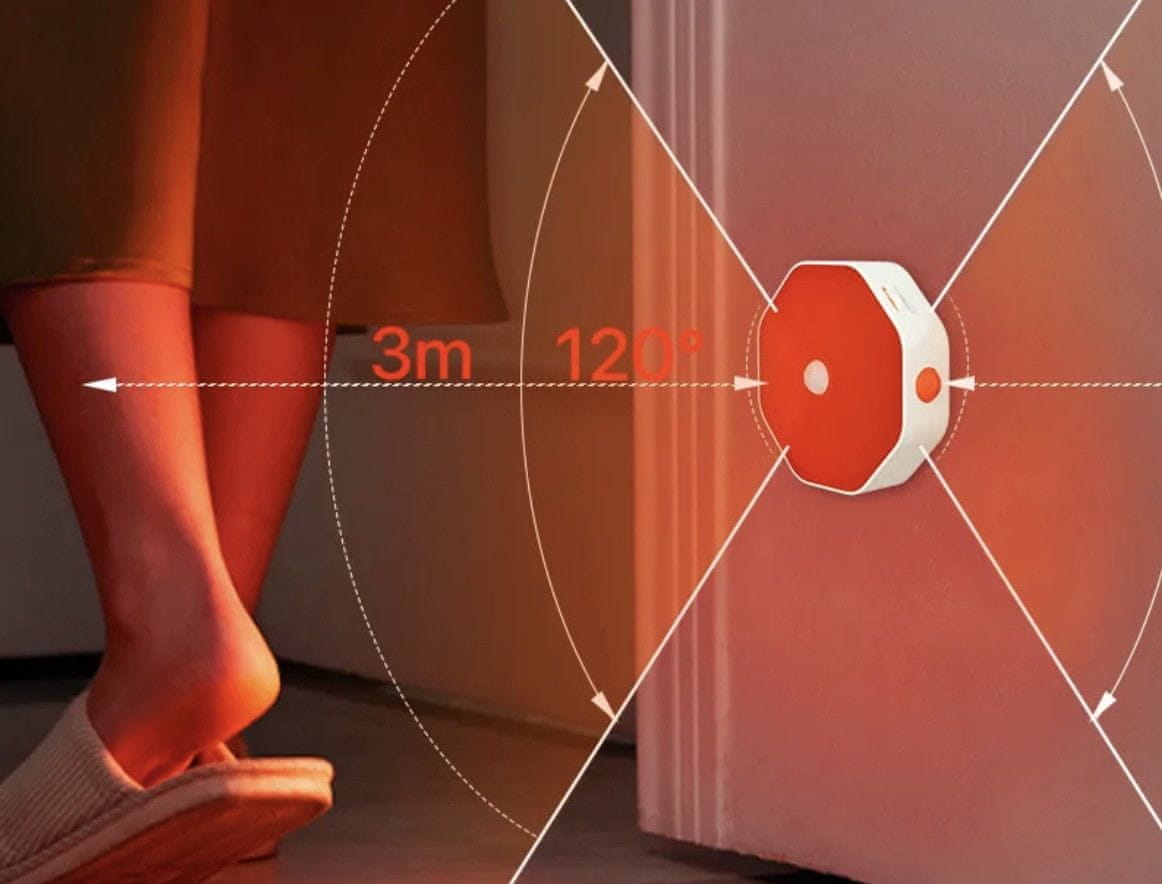 Prijazno cirkadianemu ritmu: Rdeča svetloba z barvno temperaturo 1100K ne vsebuje nobene modre sestavine, ki bi lahko motila tvorbo melatonina in s tem kakovost spanja. Zaradi tega se lahko zbudite spočiti in polni energije, tudi če se luč ponoči aktivira. To jo naredi idealno izbiro za nočno uporabo, na primer pri dojenju, previjanju ali gibanju po hiši.