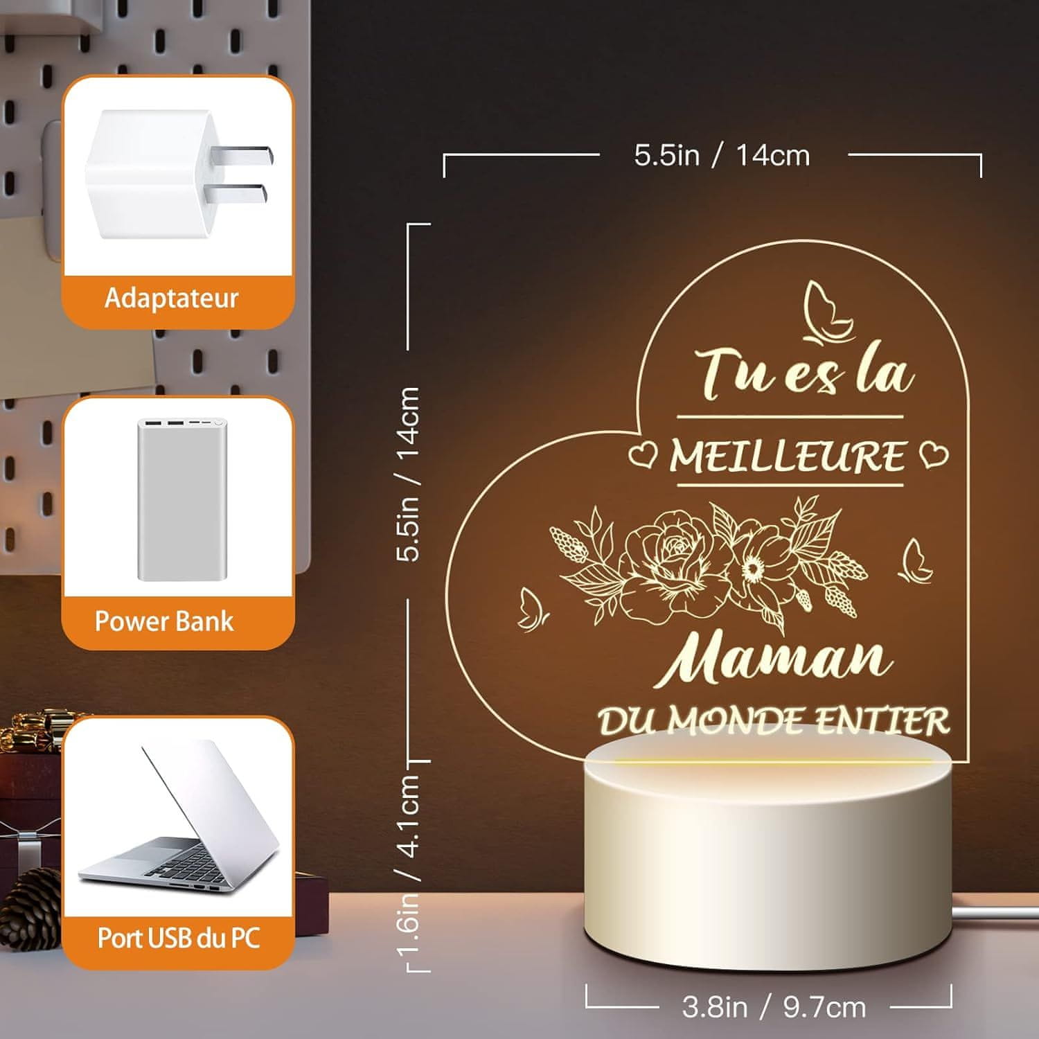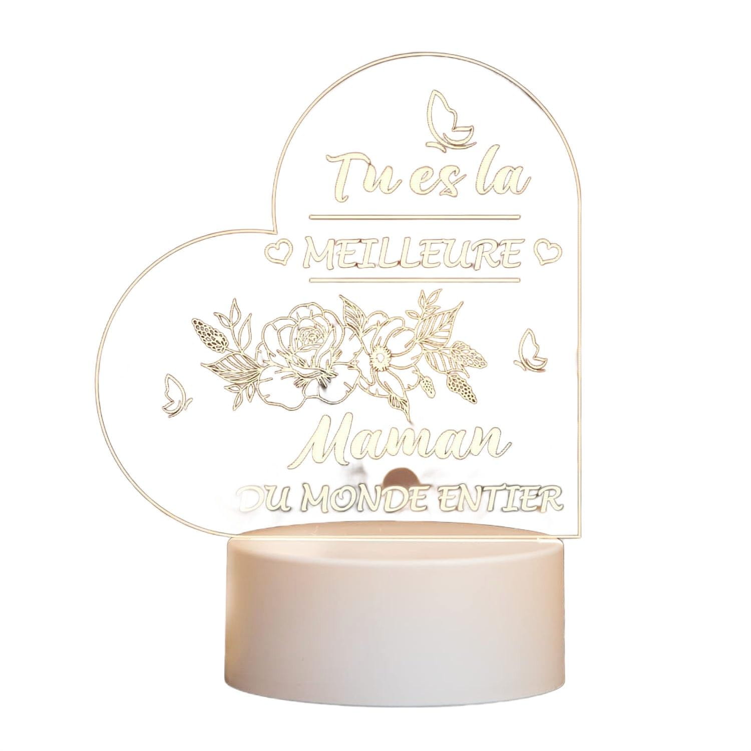 Nikcorp LED nočna lučka v obliki srca z napisom v francoščini | Darilo za mamo za materinski dan ali rojstni dan | Dekoracija