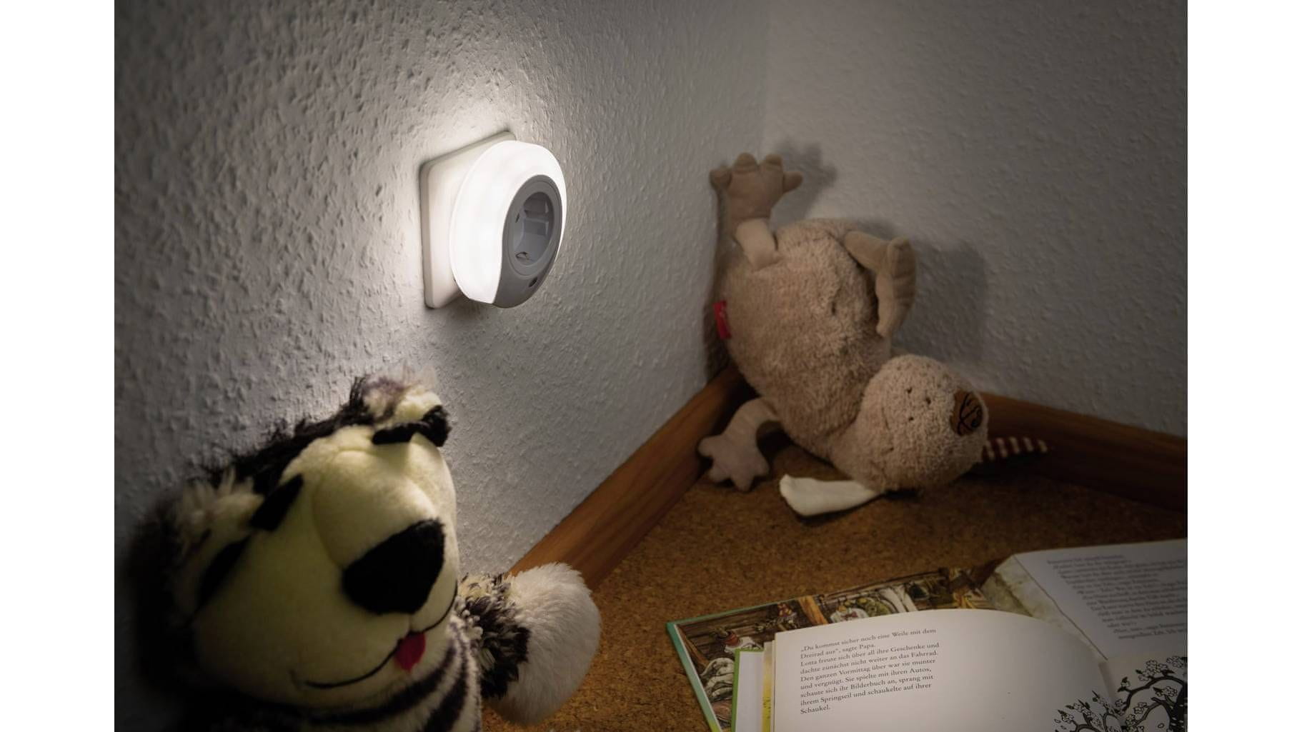 Preprosto ga priključite v vtičnico in zasveti. Zahvaljujoč integrirani vtičnici ponuja prostor za vtič. Ko je senzor za temo aktiviran, se luč prižge le, ko je temno.